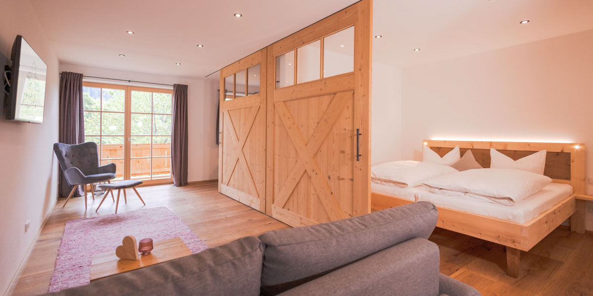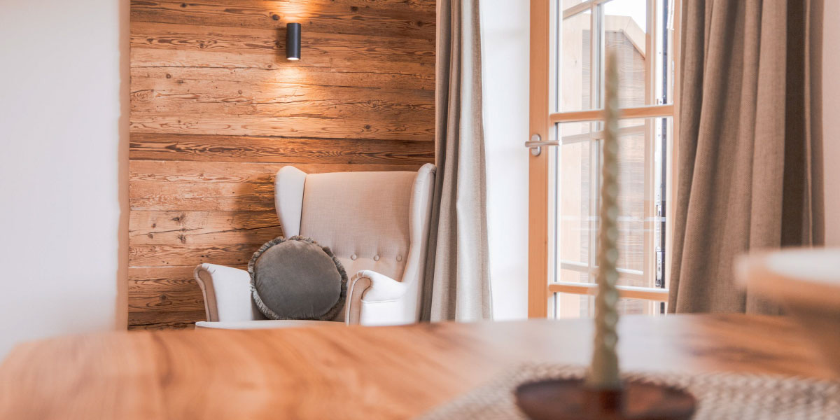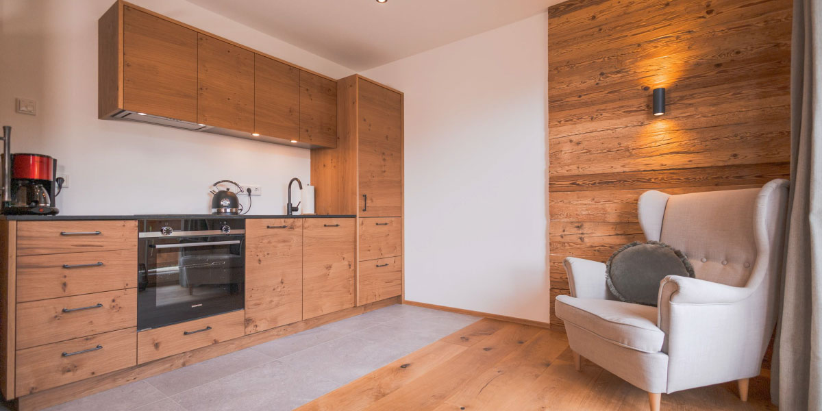 Jede unserer barrierefreien Wohnungen ist liebevoll gestaltet mit viel Fichtenholz und Naturmaterialien. Ein Doppelbett aus Zirbenholz sowie eine ausziehbare Couch bieten besonders erholsame Schlafmöglichkeiten für bis zu 4 Personen. Handtücher und Bettwäsche sowie eine voll ausgestattete Küche sind in jeder Wohnung vorhanden. Die Balkone laden zu einem atemberaubenden See- und Bergblick ein. Und aus dem Wasserhahn sprudelt unser frisches Bergquellwasser direkt von der Neureuth.